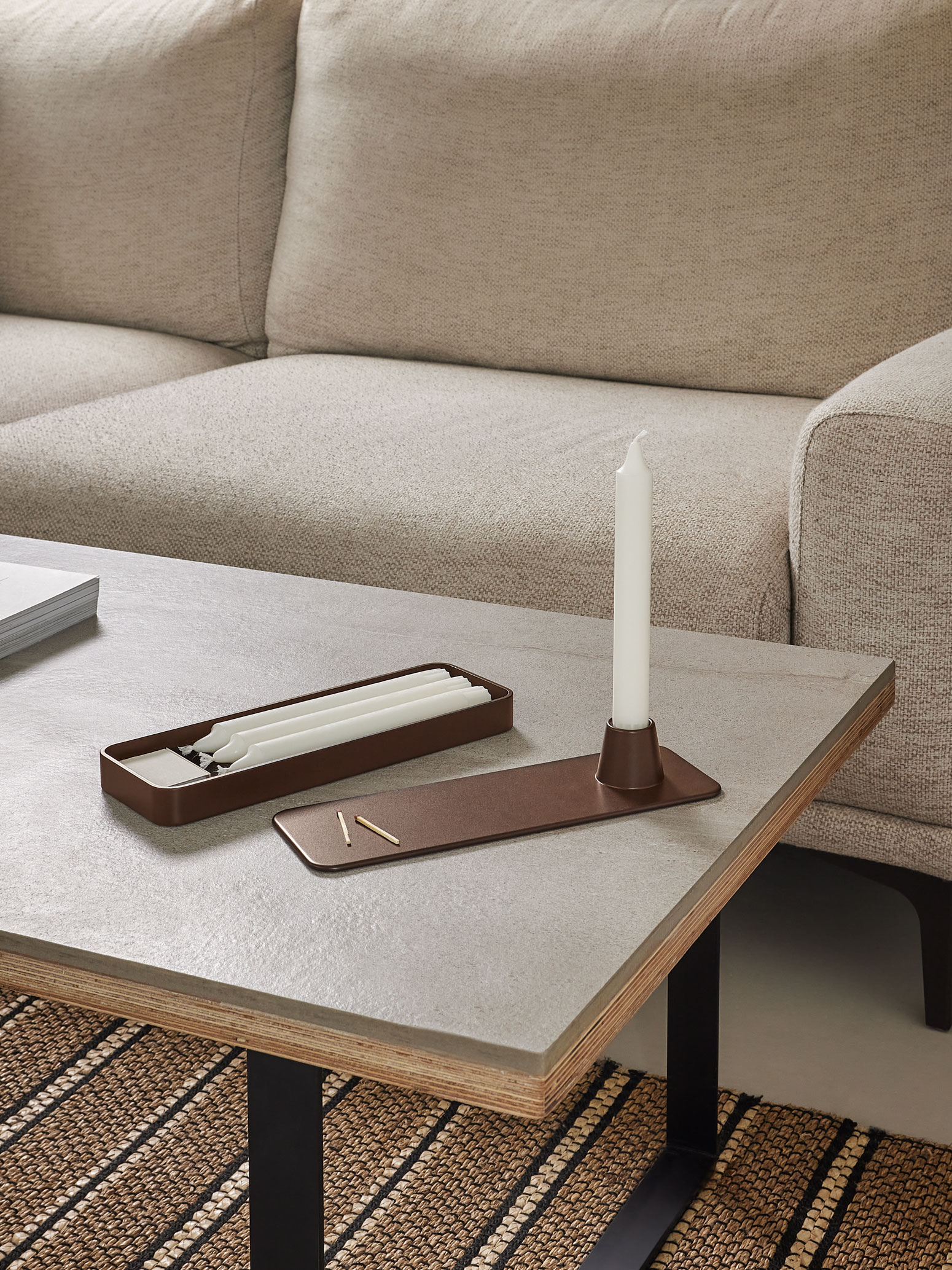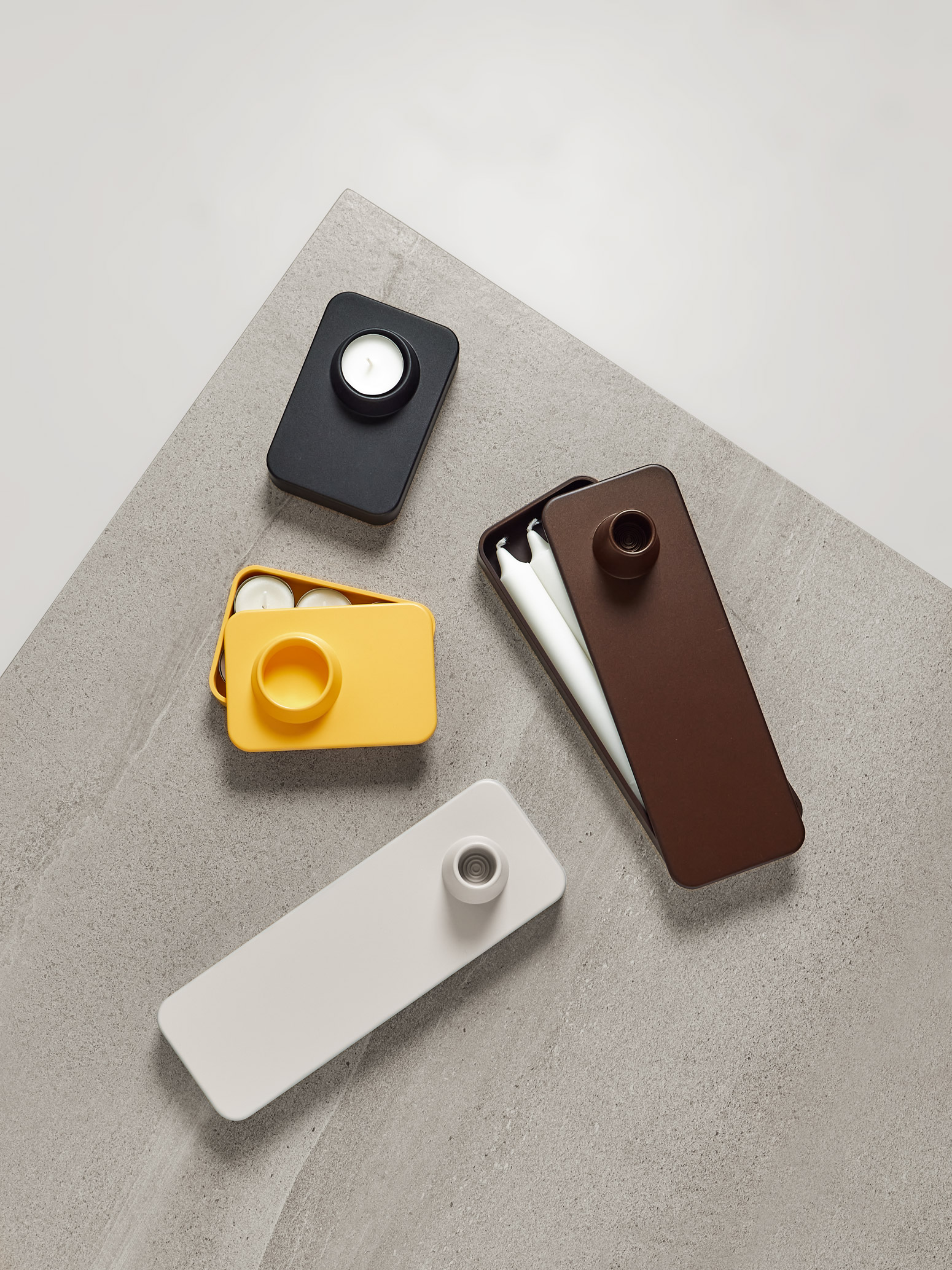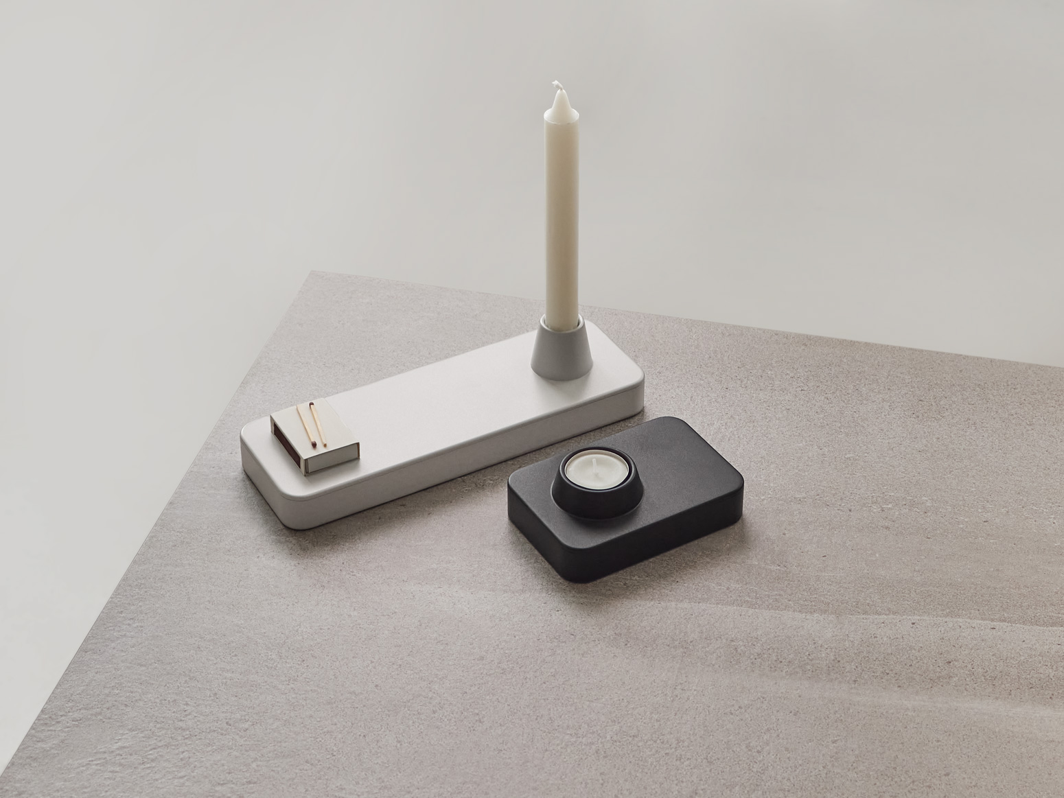 This candle holder system is built around a simple idea: combining storage and display in one coherent object. Composed of two stackable boxes in different sizes, the larger version holds up to four tall taper candles, while the smaller one stores six tea lights. In both cases, the box lid doubles as the base for displaying and lighting the candles. The concept focuses on versatility and ritual — storing the candles safely inside, then using the lid as a clean, minimal platform when it’s time to bring them to life. The result is a quiet, contained object that transforms from container to atmosphere with a single movement.